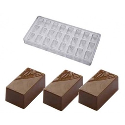 Mit dieser professionelle Pralinenform können Sie rechteckige Pralinen mit eingraviertem Kakaofrucht Motiv erstellen. Form aus Polycarbonat.