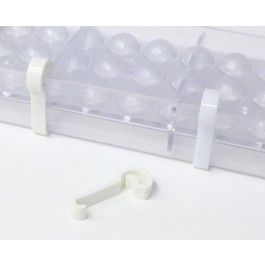 Pralinenform für Eier mit Kristalloberfläche. Bei Verwendung von zwei Formen können Eier mit 33 mm Höhe und 22,7 mm Durchmesser und 10,4 Gramm Gewicht hergestellt werden. Stabile, langlebige Polycarbonatform.