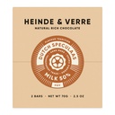 Alle Schachteln von Heinde & Verre enthalten zwei einzeln verpackte Tafeln zu je 35 Gramm. "Eine für sofort und eine für später", wie die beiden Gründer Ewald und Jan-Willem sagen. So bleibt die zweite Hälfte der Schokolade lange frisch.