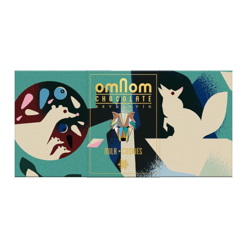 Bean to Bar Vollmilch Schokolade mit Cookies (Keksen) von omNom aus Island. 60 g Tafel in der Winteredition.