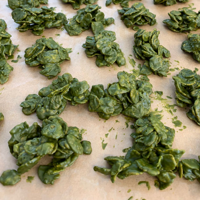 Der Schoko-Matcha-Trend zum knuspern: knusprige Corn Flakes umhüllt mit feiner Inspiration Matcha Schokolade von Valrhona. Natürliche Farbe und Geschmack durch 100% Matchapulver. Feinherber Grünteegeschmack zum Naschen.